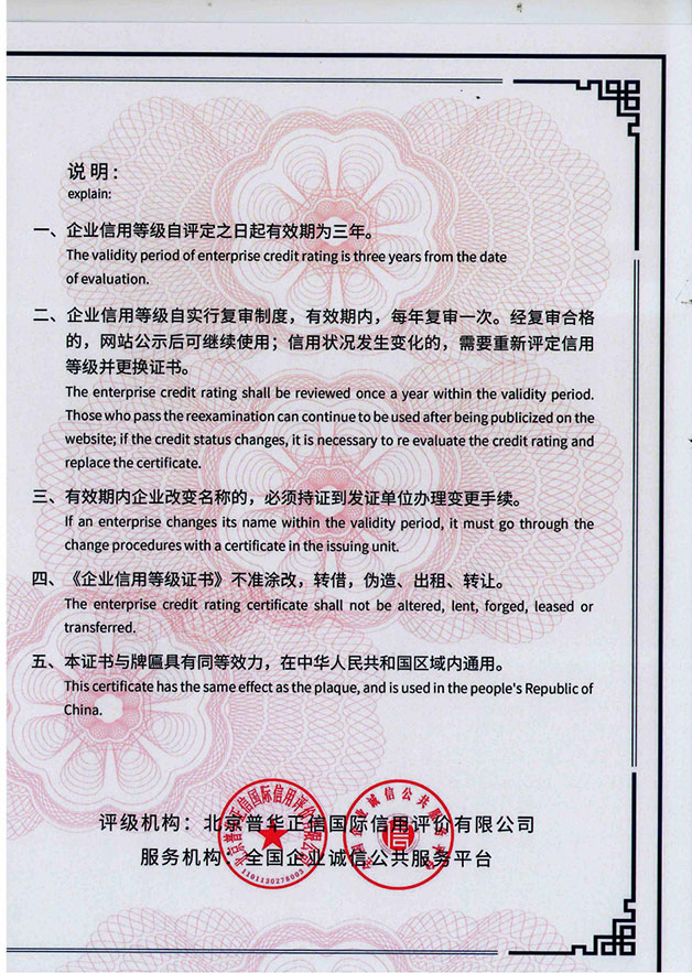 企業(yè)信用等級證書(shū)
