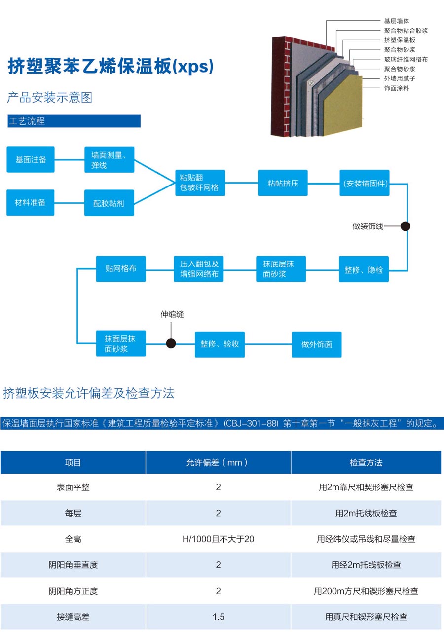 擠塑聚苯乙烯保溫板(XPS)是以聚 苯乙烯樹(shù)脂為原料,經(jīng)由特殊工藝連續 擠出發(fā)泡成型的硬質(zhì)板材。其內部為獨 立 的 密 閉 式 氣 泡 結 構 是 一 種 具 有 高 抗 壓、不吸水、防潮,不透氣、輕質(zhì)耐腐蝕, 使用壽命長(cháng)、導熱系數低等優(yōu)異性能的 環(huán)保材料。 擠塑聚苯乙烯保溫板(XPS)廣泛應 用于墻體保溫,平面混凝土屋頂及鋼結 構屋頂的保溫,低溫儲藏、地面、泊車(chē) 平臺,機場(chǎng)跑道、高速公路等領(lǐng)域的防 潮保溫、控制地面膨脹是目前建筑業(yè)界 **物美價(jià)廉的隔熱、防潮材料。